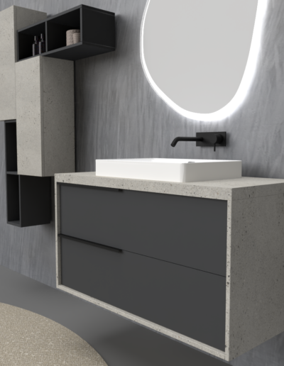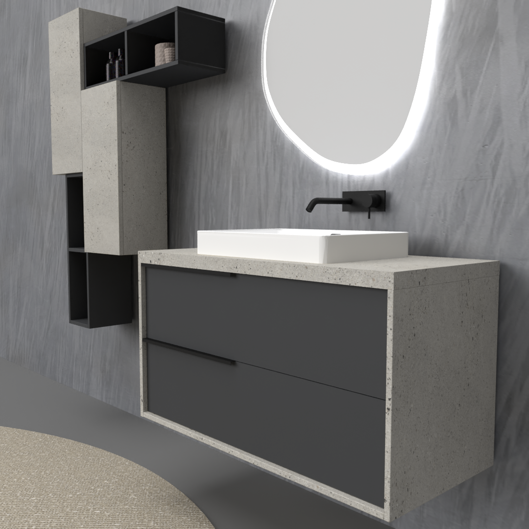 Unica, elegante e raffinata: questa è ISIDE. Il lavabo in ceramica semintegrato, le maniglie profilo nere e la struttura e frontale a contrasto, rendono la composizione sospesa ISIDE unica nella sua eleganza e raffinatezza grazie a un design ricercato e minimalista: le linee nella loro semplicità esaltano le finiture a contrasto del frontale e della struttura del mobile permettendo di soddisfare le più alte esigenze cromatiche e stilistiche.